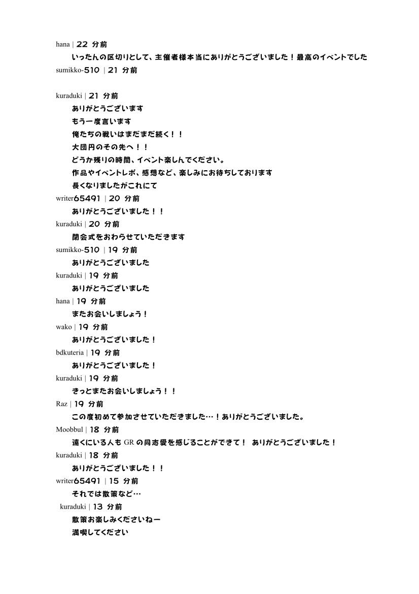X(Twitter)の方には載せましたが、こちらにも閉会式のログを貼っておきます。